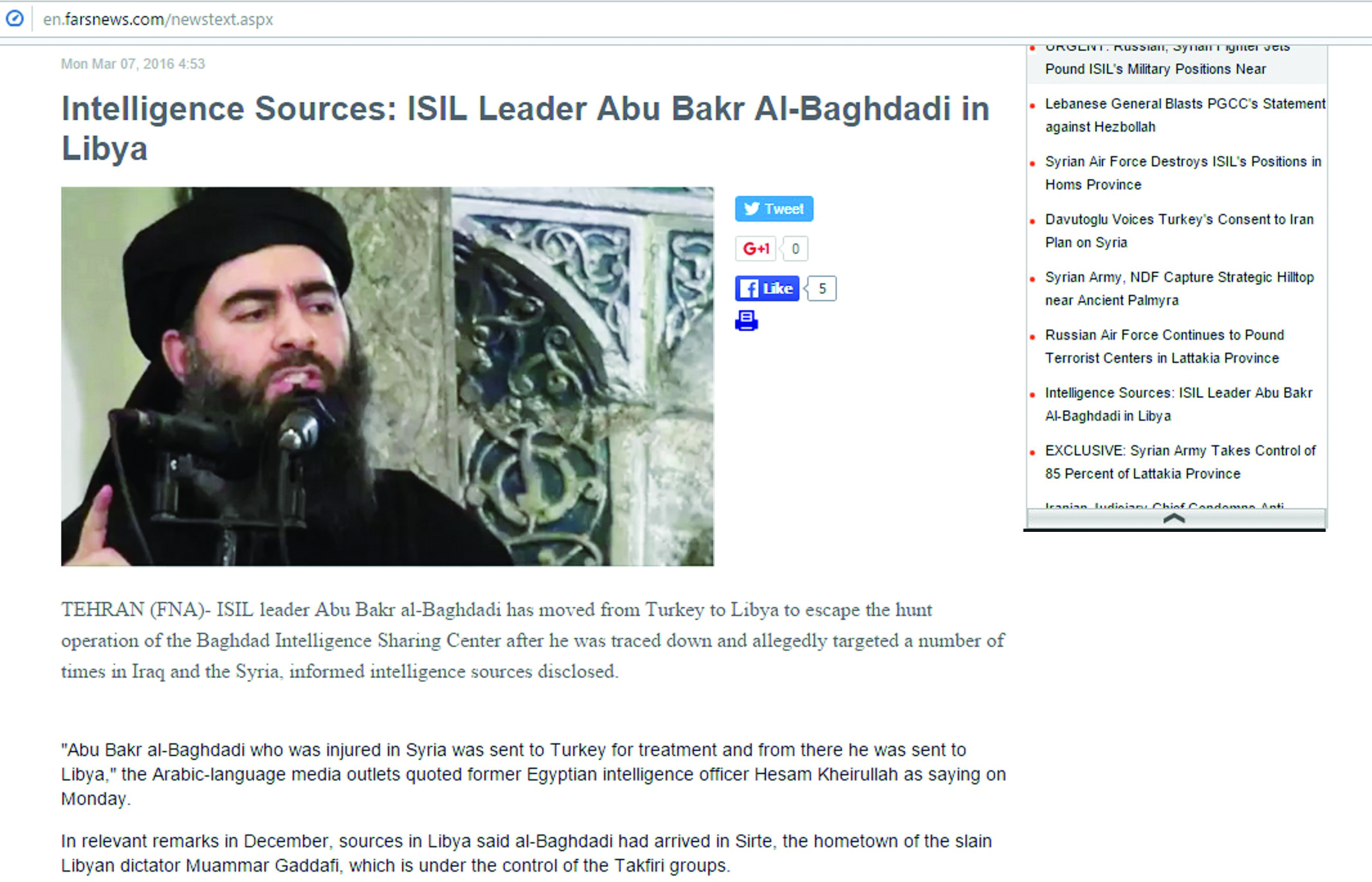 Türkiye’nin DAEŞ destekçisi olduğu saçmalığı İranlıların dilinden düşmemeye başladı. İran kaynaklı el Alam ve Fars Haber Ajansı bir süredir “istihbarat kaynaklarından elde edilen bilgilere göre”, yani herhangi bir kaynağa dayandırmadan “Türkiye’nin Ebu Bekir Bağdadi’yi CIA-MİT ortak operasyonu ile ölümden kurtardığı” tezini işliyor. 14 Ekim ve 9 Aralık 2015, bir de 7 Mart 2016 tarihli haberler duruyor önümüzde. Tam bir suçlu psikolojisi bu!… Yoksa DAEŞ’i İran mı kolluyor?…