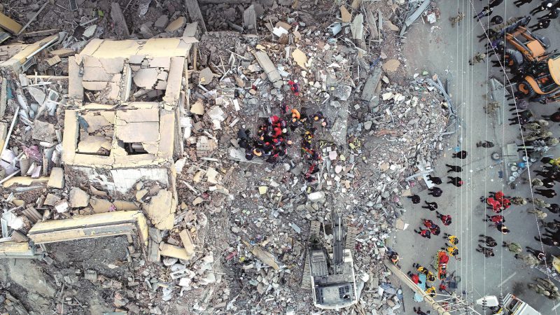 Bir saat rötarlı uçuşun ardından afet bölgesine varmıştık. İlk durağımız Mustafa Paşa Mahallesi oldu. Sokaklar polis ekipleri tarafından güvenlik şeridi ile kapatılmış, arama kurtarma faaliyetleri sorunsuz bir şekilde ilerlesin diye tüm tedbirler alınmıştı. Deprem mahalline gitmek için uzun bir yol yürümek durumunda kaldık. Mustafa Paşa’ya doğru ilerlerken geçtiğimiz her sokak hasarlı, her bina yaralıydı. Kimi binalardan kopan parçalar yol kenarında bekleyen araçların üzerine düşmüş araçlara hasar vermişti. Merkeze ilerlerken çoğu binanın yıkılmadığını ama hemen hemen tüm evlerin hasar gördüğünü tespit etmek hiç de zor olmadı. Bu yürüyüş ürperticiydi. Zira her adım enkaz yığınına biraz daha yaklaştırıyordu bizi. 99 depreminde ya da Suriye savaşında gördüğümüz yıkık dökük, harabe binalar bu kez Elazığ’da karşımıza çıkmıştı.