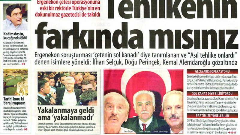 2007, Türkiye’nin yakın siyasi tarihi açısından pek çok düğümün birleştiği bir yıldı. Bir önceki yıl Danıştay ve Cumhuriyet gazetesi saldırıları yaşanmış; Cumhuriyet’in ‘Tehlikenin farkında mısınız?’ sloganı gibi söylem ve eylemlerle ‘laiklik elden gidiyor, irtica geliyor’ türü korku ve panik üreten, toplumu geren kampanyalar başlamıştı. Taraf Gazetesi, bu kaotik ortamda ‘Düşünmek taraf olmaktır’ sloganıyla yayın hayatına başladı.