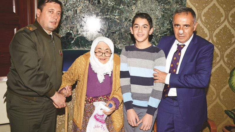 Serik ilçesinde yalnız yaşayan Döndü Tozlu, Serik Kaymakamı Haluk Şimşek’i makamında ziyaret etti. Duygulanan Kaymakam Şimşek, “Söyleyecek söz bulamıyorum. Döndü teyze devletimizin kendisine vermiş olduğu yaşlılık maaşını biriktirip Türk Silahlı Kuvvetlerimize bağışlamıştır. Mehmetçik’in operasyonlarından çok etkilenince böyle bir örnek davranış sergilemeye karar vermiş. İşte Türk milleti bu, Türk anası bu.” dedi.