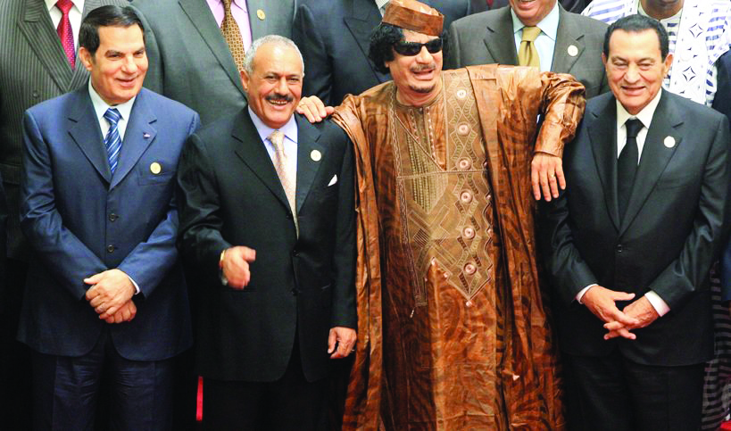İran destekli Husiler, Suudi Arabistan ile anlaşan eski Yemen Cumhurbaşkanı Ali Abdullah Salih’i öldürdü. Sanhan bölgesinde konvoyu durdurulduktan sonra infaz edilen Salih’in cesedi bir kamyonetin kasasında teşhir edildi. Suikastın bölgede güç mücadelesi veren Riyad ile Tahran arasındaki savaşı büyütmesinden endişe ediliyor. Gelelim haberdeki fotoğrafa. 2010 yılında Sirte’de düzenlenen Afro-Arap Zirvesi’nde çekilen fotoğraftaki liderler dikkat çekiyor. ‘Diktatörlerin neşesi’ olarak da anılacak olan bu karenin kaydedilmesinden bir yıl sonra olanlara bakalım hemen. Sağ baştaki lacivert takım elbiseli Tunus lideri Zeynel Abidin bin Ali, Arap Baharı’nın devirdiği ilk diktatördü. 14 Ocak 2011 günü ülkesini terk ederek Suudi Arabistan’a sığındı. Mısır’ı 30 yıl boyunca demir yumrukla yöneten Hüsnü Mübarek, 2011’in Ocak ayında başlayan yaygın halk gösterilerinden sonra, Şubat ayında görevinden ayrıldı ve ardından tutuklandı. Ve Muammer Kaddafi… Ekim 2011’de Arap Baharı’nın Libya’yı ateşe verdiği günlerde halkı tarafından linç edilerek katledildi. Şimdilerde darbeci Sisi’nin koruması altında yaşayan Hüsnü Mübarek ve Suud yönetiminin nerede sakladığı bilinmeyen Zeynel Abidin bin Ali bu fotoğrafa bakıp ne düşünüyordur acaba?