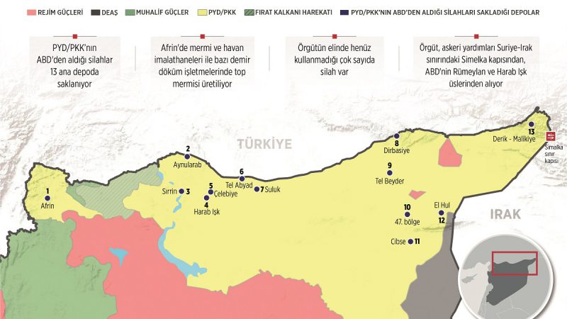 Yeni Şafak ABD’nin Suriye PKK’sına yönelik kara ve hava sevkiyatlarında örgüte teslim ettiği Rus-Kaleşnikof sayısının 100 bini aştığı bilgisine ulaştı. Halen PKK bileşeni bir grupta üst düzey görev yapan kaynak örgütün giren her silah ve cephane ile ilgili resmi envanter tuttuğunu ve ABD’nin teslim ettiği silahlardan yalnızca yüzde 30’luk kısmın sıcak hatlara ( DEAŞ’a karşı savaşmak üzere) sevk edildiğini söyledi.