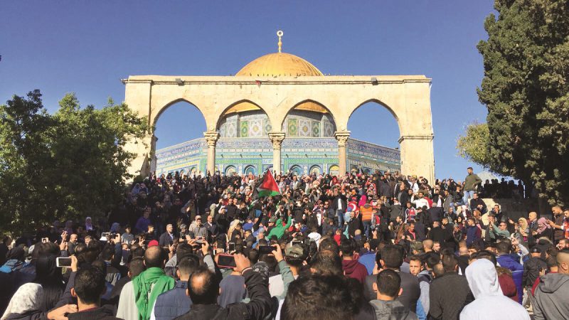 Mescidi Aksa’nın yanı başındaki dar sokaklarda İsrail bayrakları ve İsrail güvenlik güçlerine ait merkezler gözümüze çarpıyor. İngilizler 1917’de Filistin topraklarını Balfour Deklarasyonu ile Siyonistlere vaad ettikten sonra, şimdi de yüzyıl sonra 2017’de ABD Devlet Başkanı Trump, Siyonistlere Kudüs’ün tümünü verme vaadinde bulunuyordu. Öfkeli Filistinliler bunu protesto için sokaklara akmıştı. Türkiye başta olmak üzere İslam dünyasında ABD’nin kararına büyük tepkiler yağıyordu. Uluslararası Hukuk ve BM kararları bir kez daha ABD tarafından çok pervasızca çiğneniyordu.
