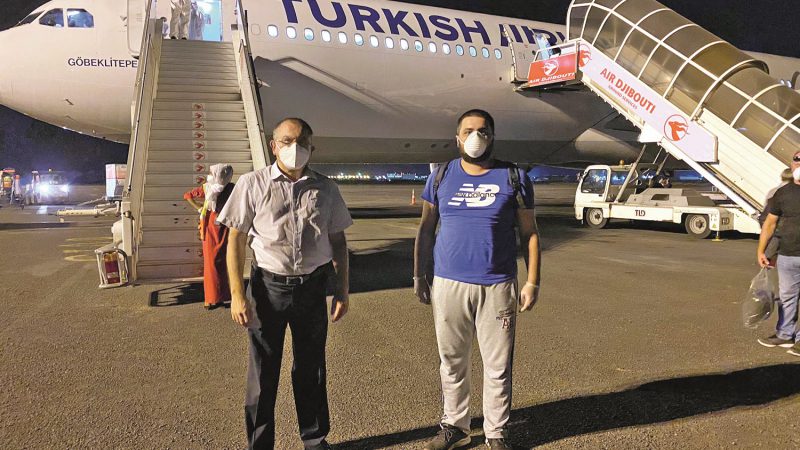 THY uçağı gelirken Eritre hava sahasından gelecekti. Uçuşlar önceden ayarlandığı için Eritre makamlarının bundan haberi vardı. Uçak, Eritre hava sahasına girerken kabul edilmeyeceği söylenince, uçağımız geri dönerek Cidde’ye iniş yaptı. Bu iniş, bizim planlanan 15:30 uçuşumuzu değiştirdi. Yaklaşık 6-7 saat gecikmeli olarak uçağa bindik. Cibuti Havalimanından toplam 103 kişi bindik. Cibuti’den sonraki durağımız Somali oldu. Yaklaşık 100 kişi de Somali’den aldık. Oradan da direkt Türkiye’ye geldik. Bu uçak, Türkiye’den 47 tane Cibutiliyi yaklaşık 30 tane de Somaliliyi ülkesine getirdi. Bu kişilerin testlerini yapmışlar. Kendi ülkelerine kavuştular. Biz de 12-13 saatlik bir uçak yolculuğuyla ülkemize ulaşmış olduk.