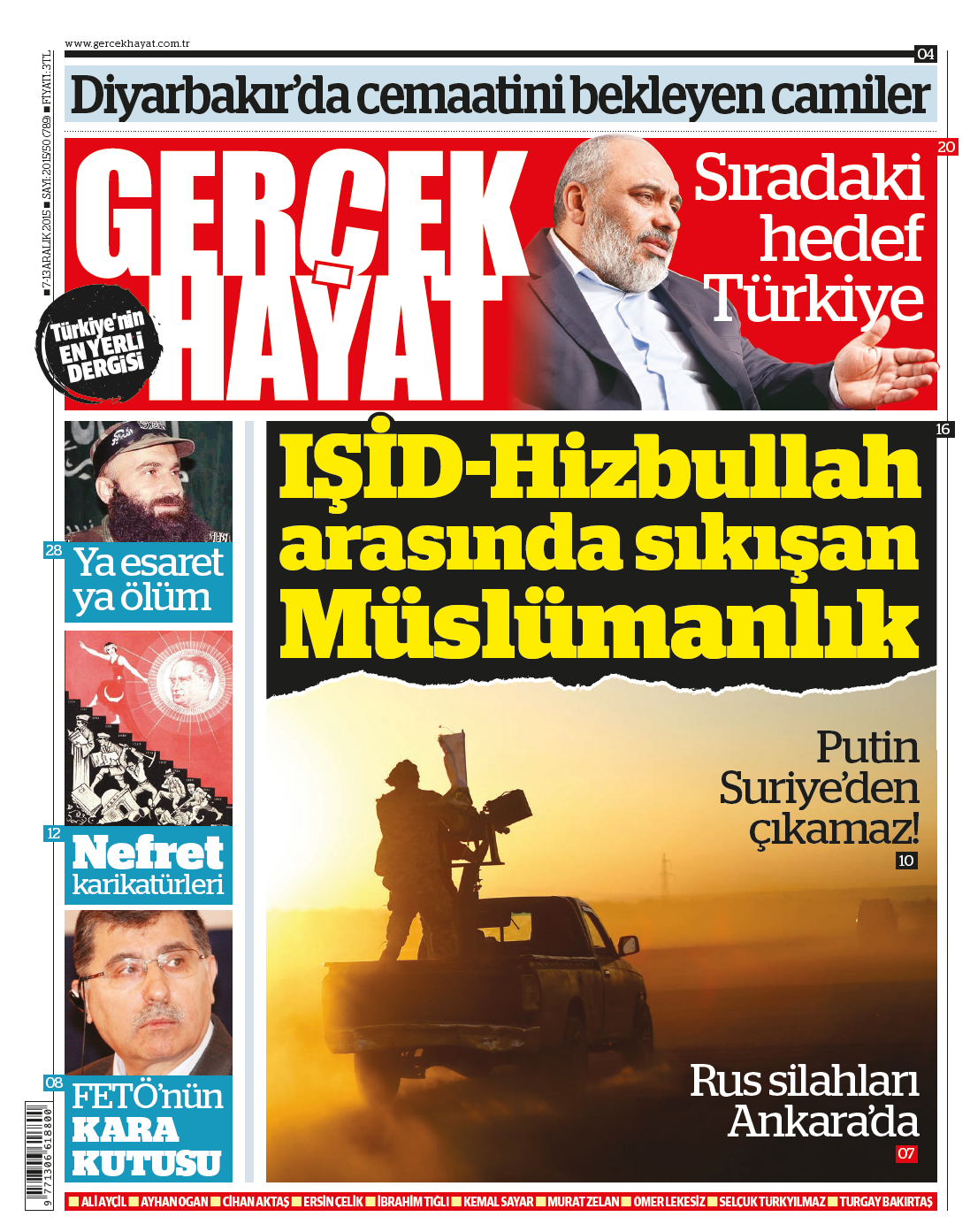 Güney sınırlarımızın tamamı neredeyse cep­heye dönüştü. Coğrafya­yı kasıp kavuran krizin tam merkezinde yer alıyoruz. Dolayısıyla Ger­çek Hayat’ın bu sayısını ağırlıklı olarak bu geliş­melere ayırdık. “Hizbul­lah-IŞİD arasına sıkışmış Müslümanlık” dosyasını özellikle seçtik. Çünkü çok büyük bir tehlikenin yaklaşmakta olduğunun farkındayız.