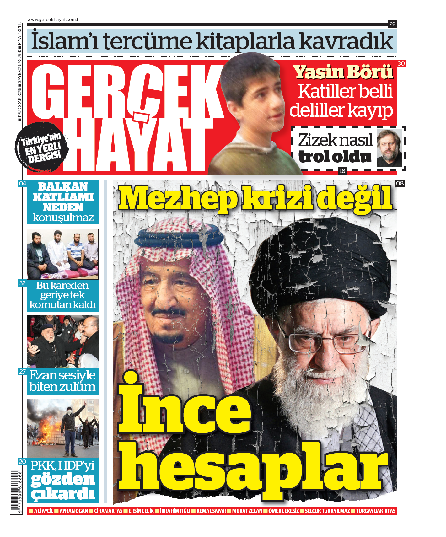 Tarih yapıcı ana omurga dediğimiz kitle ve hassasiyet, işte bu tuzağa düşmeyi reddeden, bize oynanan “Büyük Oyun”un farkında olan ana damardır. Bu oyunu kuranları da, servis edenleri de, oyunun figüranlarını da deşifre etmeye devam edeceğiz. Canımız ve kanımız akıtılarak, şehirlerimizin ve ülkelerimizin harabeleri üzerine kurulan “Büyük Oyun”a direnmek, bu büyük hesaplaşmaya katılmak bugün kendimizi kilitlemek zorunda olduğumuz bir idealdir. Bu sayıda işte bu gerçekler ışığında, yine Turan Kışlakçı imzasıyla, Suudi Arabistan-İran krizinin detaylı incelemesini bulacaksınız. Nedret Ersanel’in “S. Arabistan hakkında bilmediklerimiz”e dair yazısını da bu kapsamda öneriyorum.