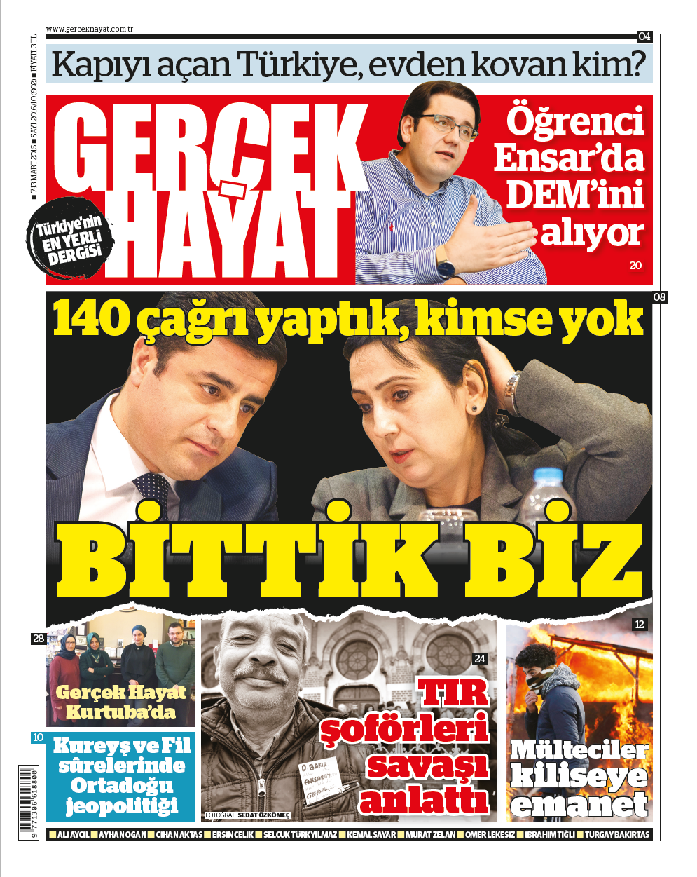 İşte Gerçek Hayat, bu hesaplaşmada yerli olan, Türkiyeli olan, coğrafya aidiyeti olan, bölgemizi saran bütün ayrışma ve çatışma söylemlerine karşı ortak alanları pekiştirmeye, savunmaya çalışanların yanında yer alan bir dergi.