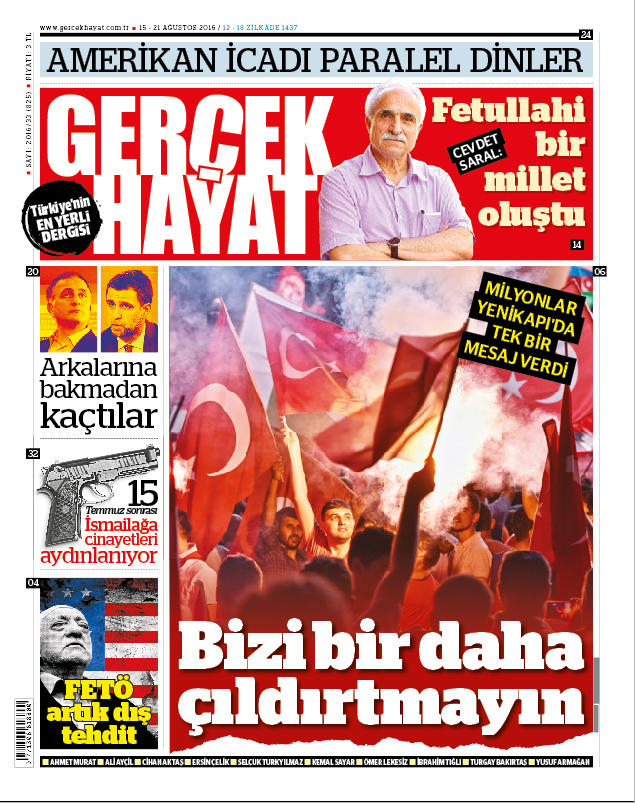 Bu yüzden, 15 Temmuz’u bütün vahametiyle, gerçekliğiyle, utancı ve öfkesiyle unutmayacağız. 15 Temmuz’dan sonra başlayan, dalga dalga büyüyecek olan yeni siyasi kimliğin, toplumsal bilincin, teyakkuz halinin, Anadolu sınırlarına taşacak olan isyan dalgasının, Türkiye’nin yerlileşmesinin, coğrafyanın kurtuluşunun, büyük Türkiye’nin öncüsü olacağız, son fert kalana kadar mücadeleye devam edeceğiz.