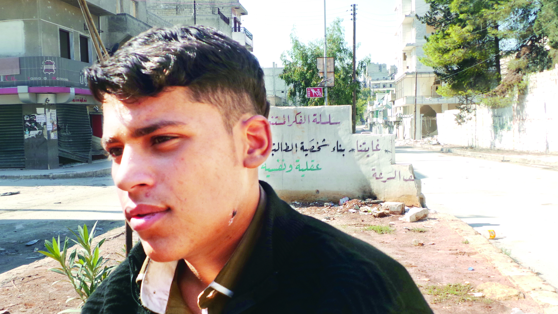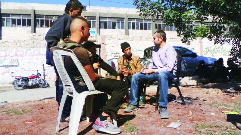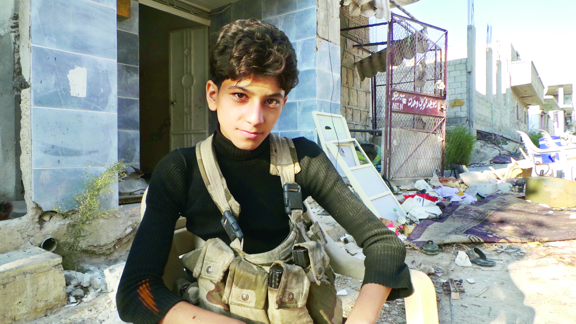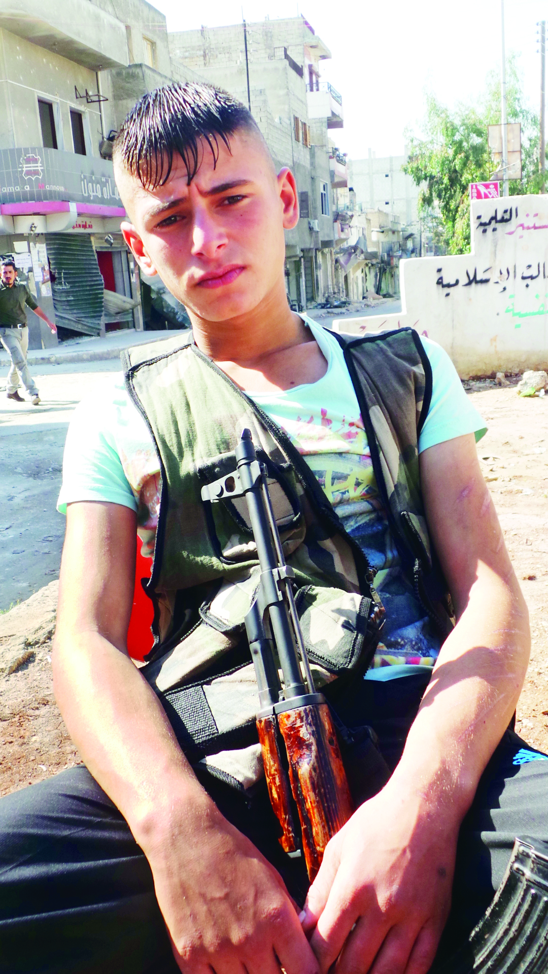 “Burada hayatın hiçbir önemi yok” diye söze başlayan Hasan Mustafa savaşçı ciddiyeti ile başladı bir yıldır cephelerde yaşadıklarını anlatmaya: “Hiç aklımızdan hayalimizden geçmeyen şeyleri yaşıyoruz. Savaş oyunları oynadığımız sokaklarda şimdi hakiki mermi ve silahlarla gerçekten savaşıyoruz. Ben 11 yaşındayken bu savaş başladı ve biz çocukluk yaşamadan büyümek zorunda bırakıldık. Babam muhaliflerle olmamı istemiyor. Ben de eve çok az gidiyorum ve 5 aydır babamla birkaç kez görüşebildik. Annem direnişçileri destekliyor ve benimle gurur duyuyor. İyi bir şey yaptığımıza inanıyorum ve sürekli çevremde ölümlere şahit oluyorum. Bu durum beni korkutmuyor bilakis daha fazla hırslandırıyor. Ülkemin özgür olması için savaşıyorum ve bu da kendimi iyi hissetmemi sağlıyor. Suriye’den ayrılmak istemiyorum. En yakın arkadaşlarımdan 4 tanesini varil bombardımanında kaybettim. İki tanesi de cephede çatışma esnasında şehid oldu. Okul yok, eğitim yok savaşmaktan başka ne yapabilirim? Bazen harabeler arasında futbol oynuyoruz.”