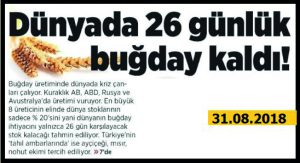 Ya da bir süre önce “dünyada 26 günlük buğday kaldı” şeklinde servis edilen ve bizim bir şeylerin işaret fişeği olduğunu düşündüğümüz bu haberin anlamını anlayan?